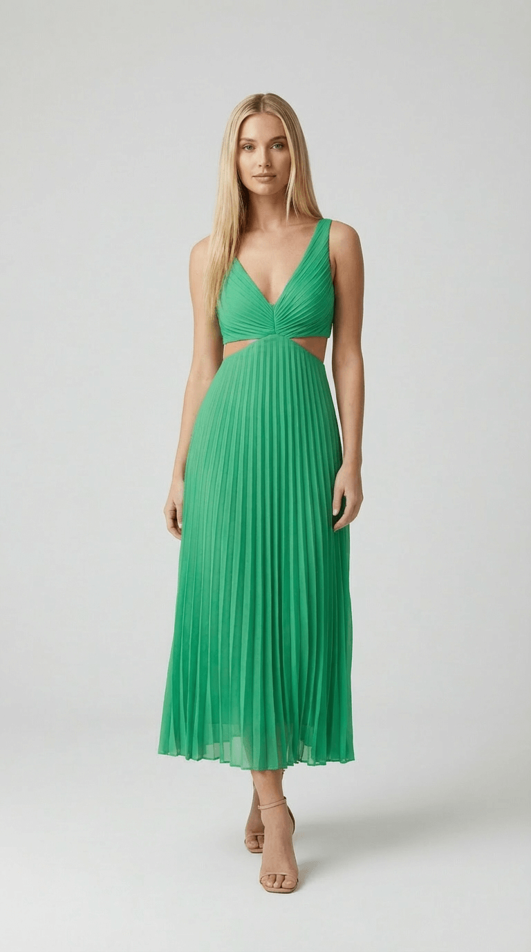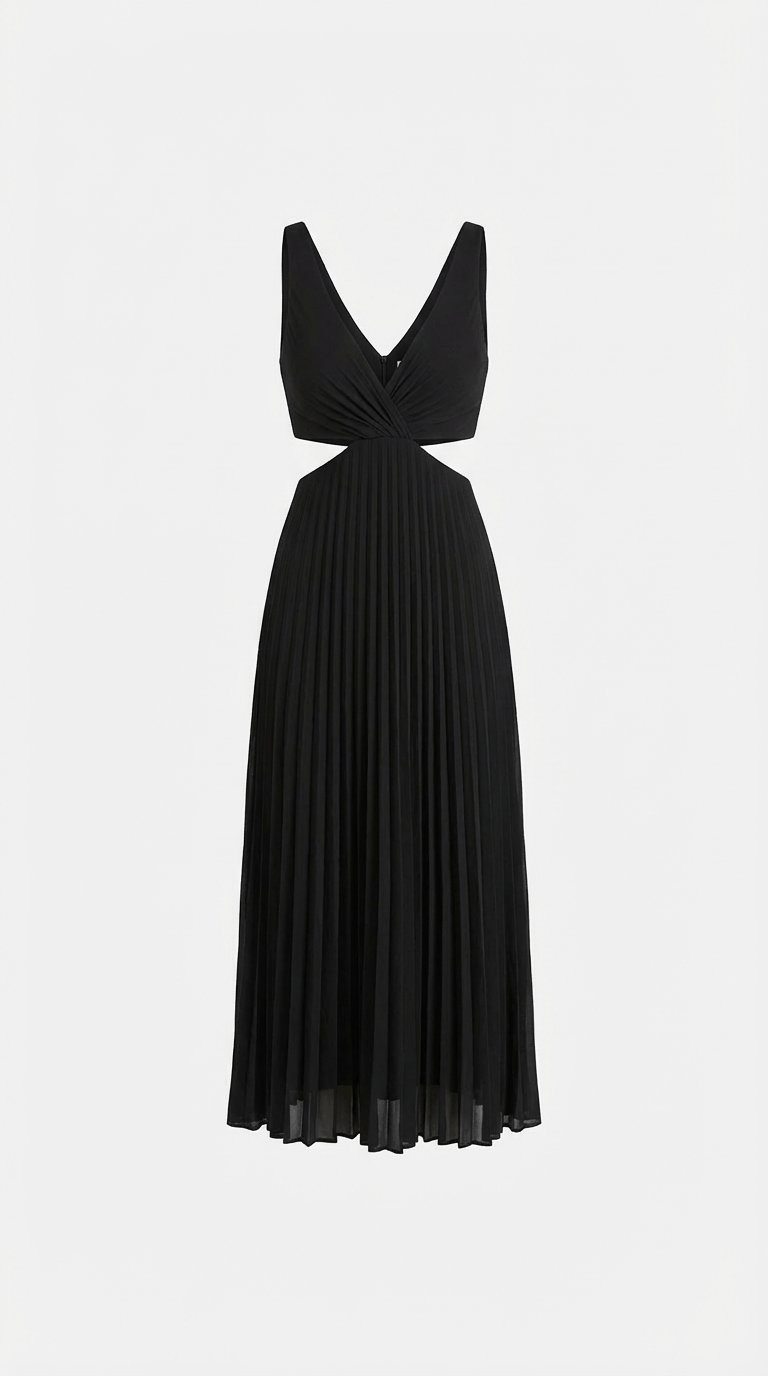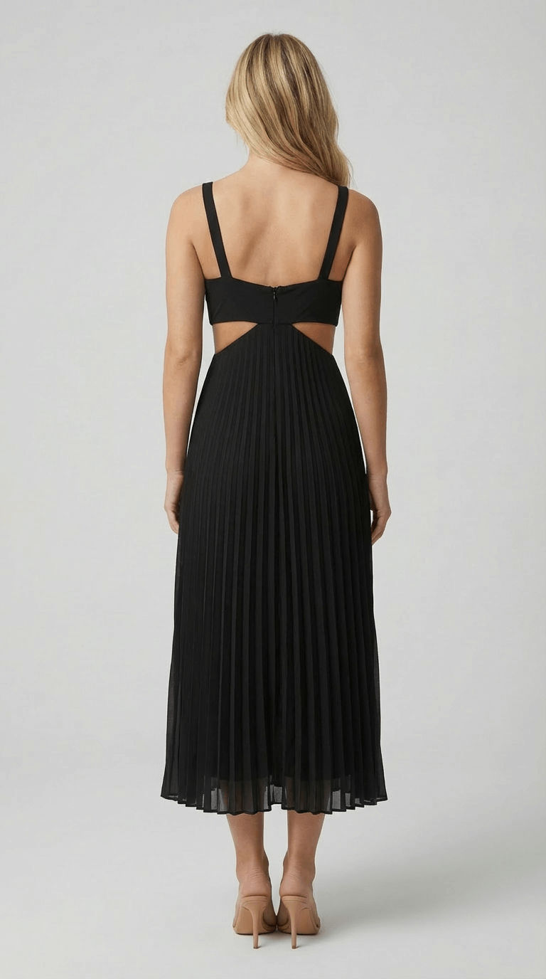 Alana Pleated Cut-Out Midi Dress