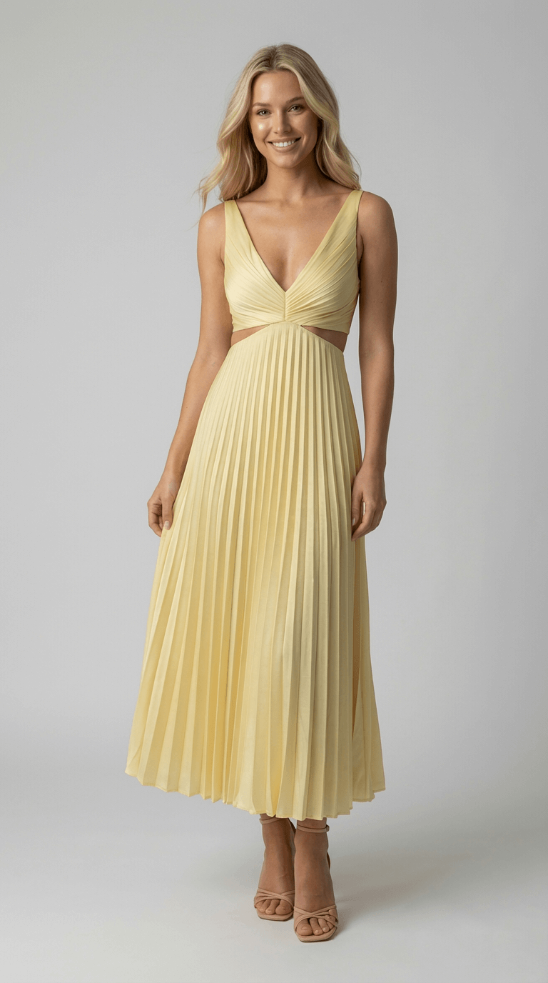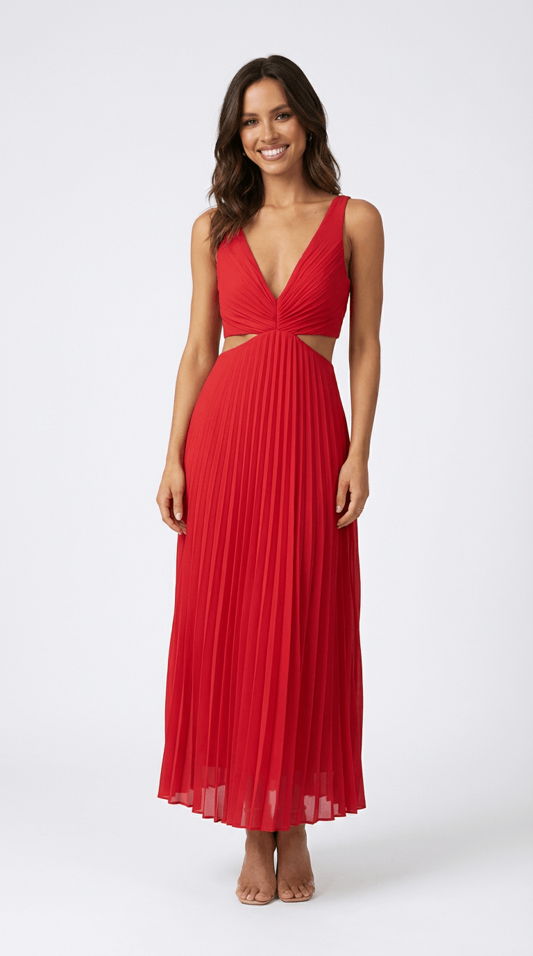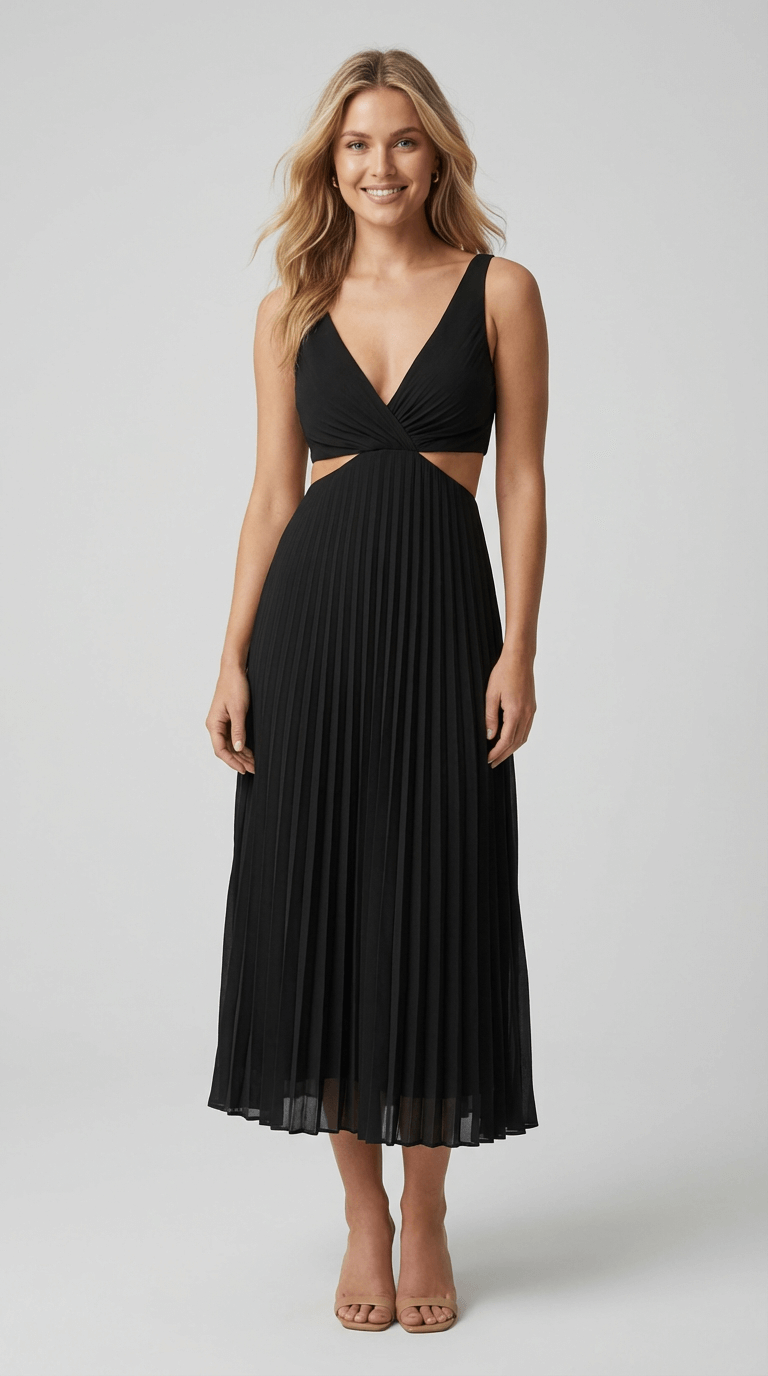 Alana Pleated Cut-Out Midi Dress