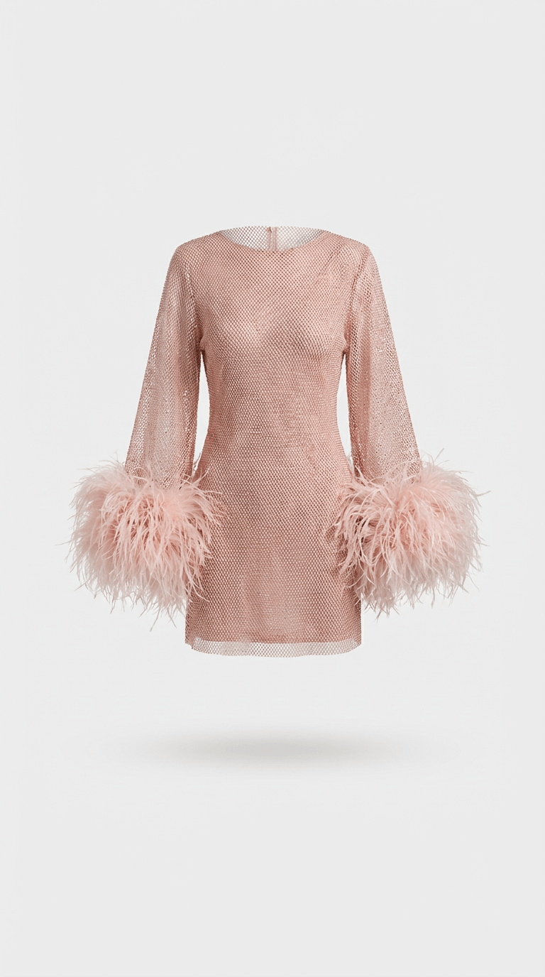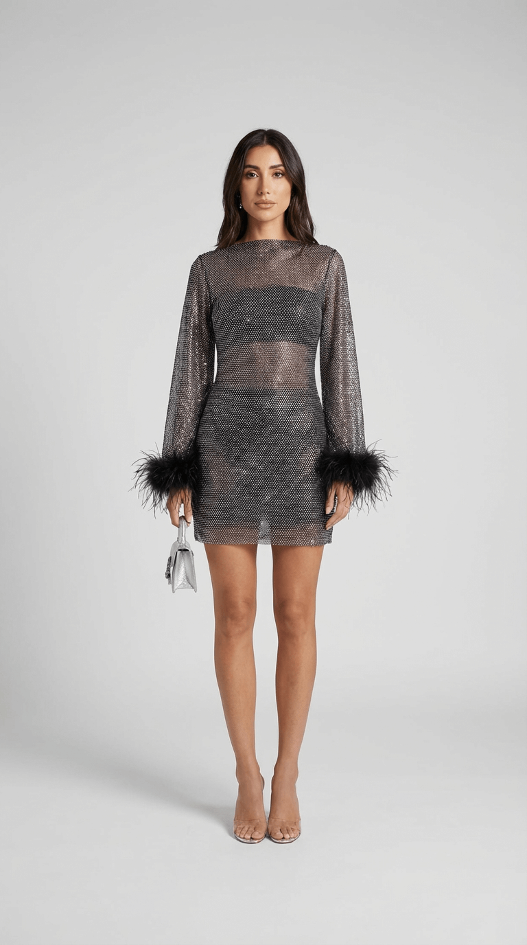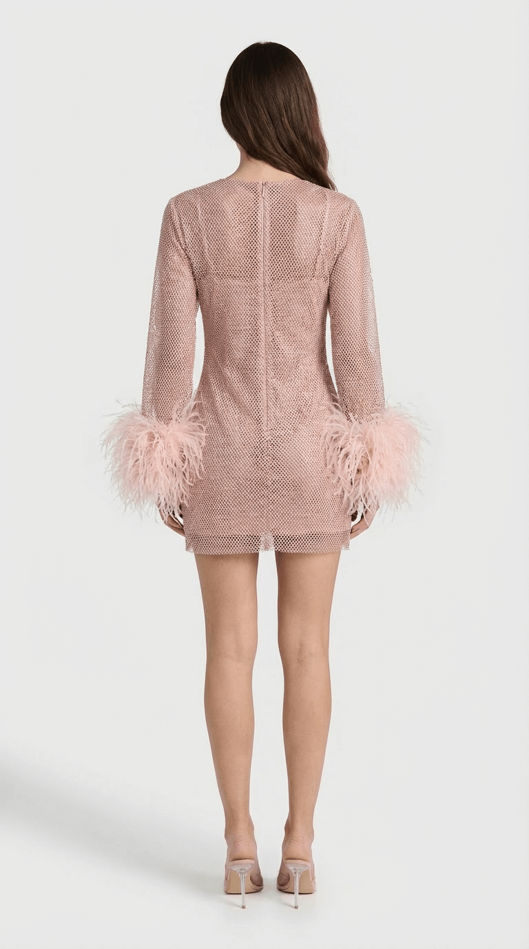 Charlotte Metallic Feather Cuff Mini Dress