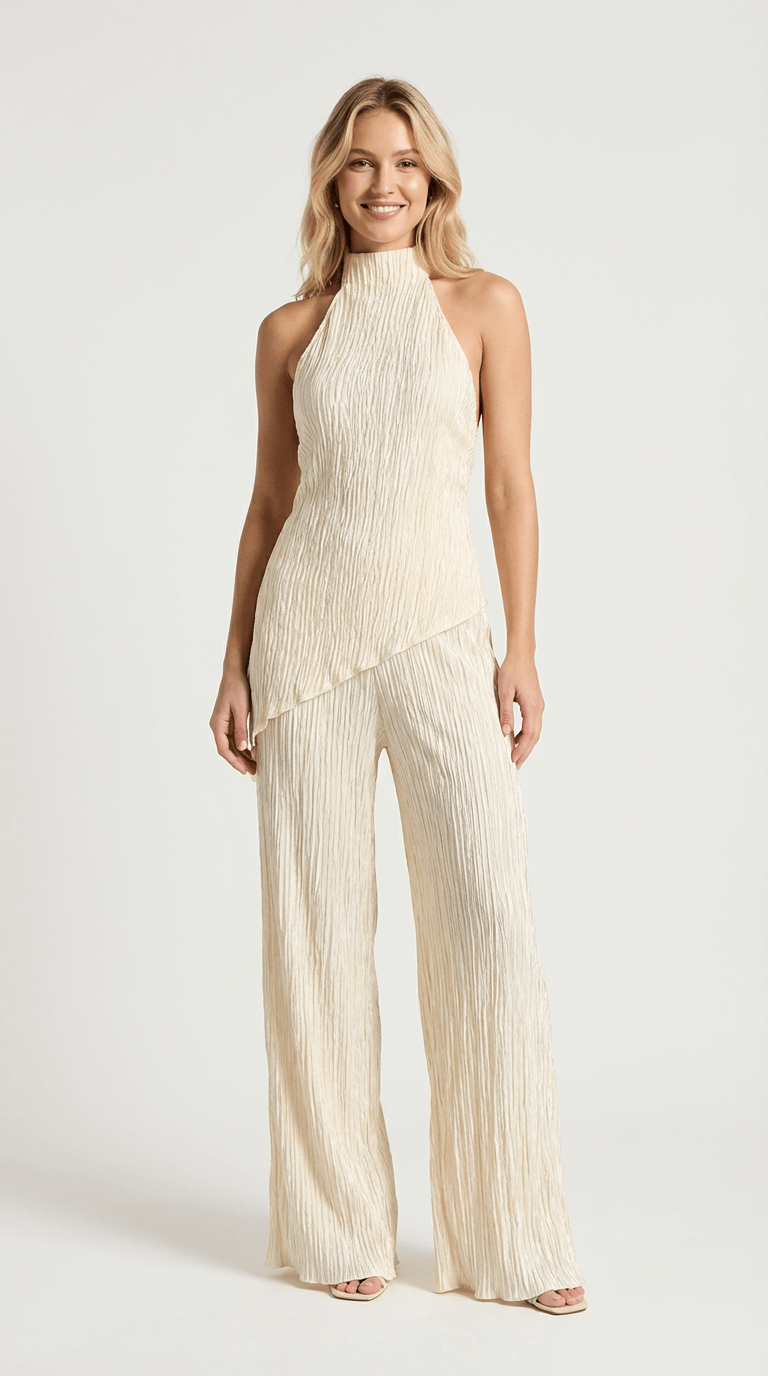 Olivia Pleated Halter Two-Piece Set