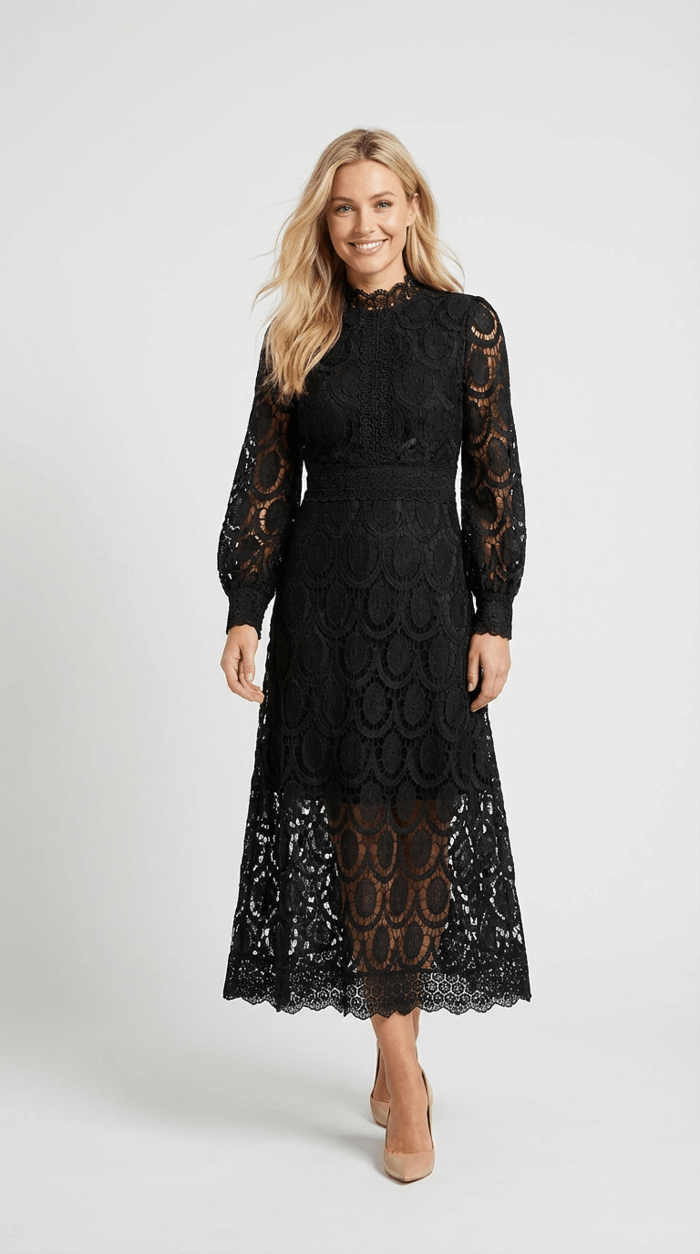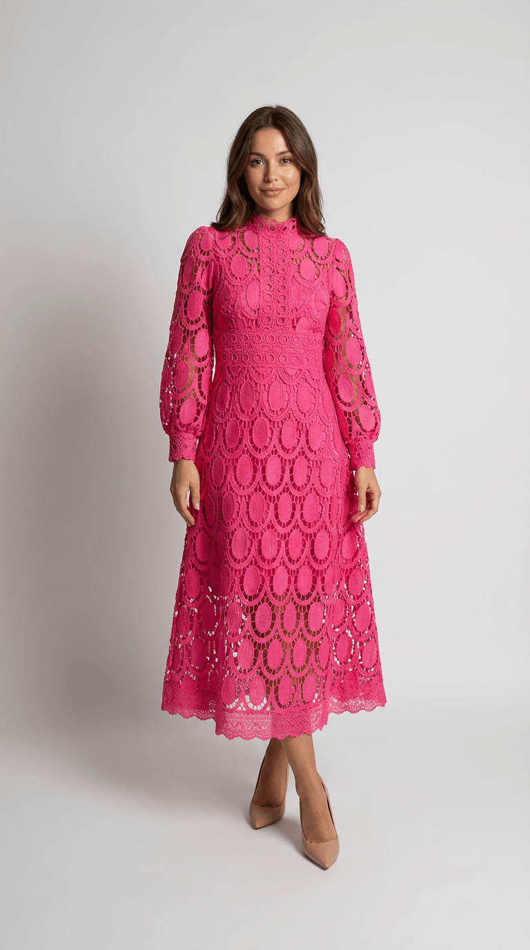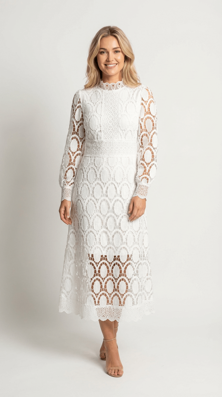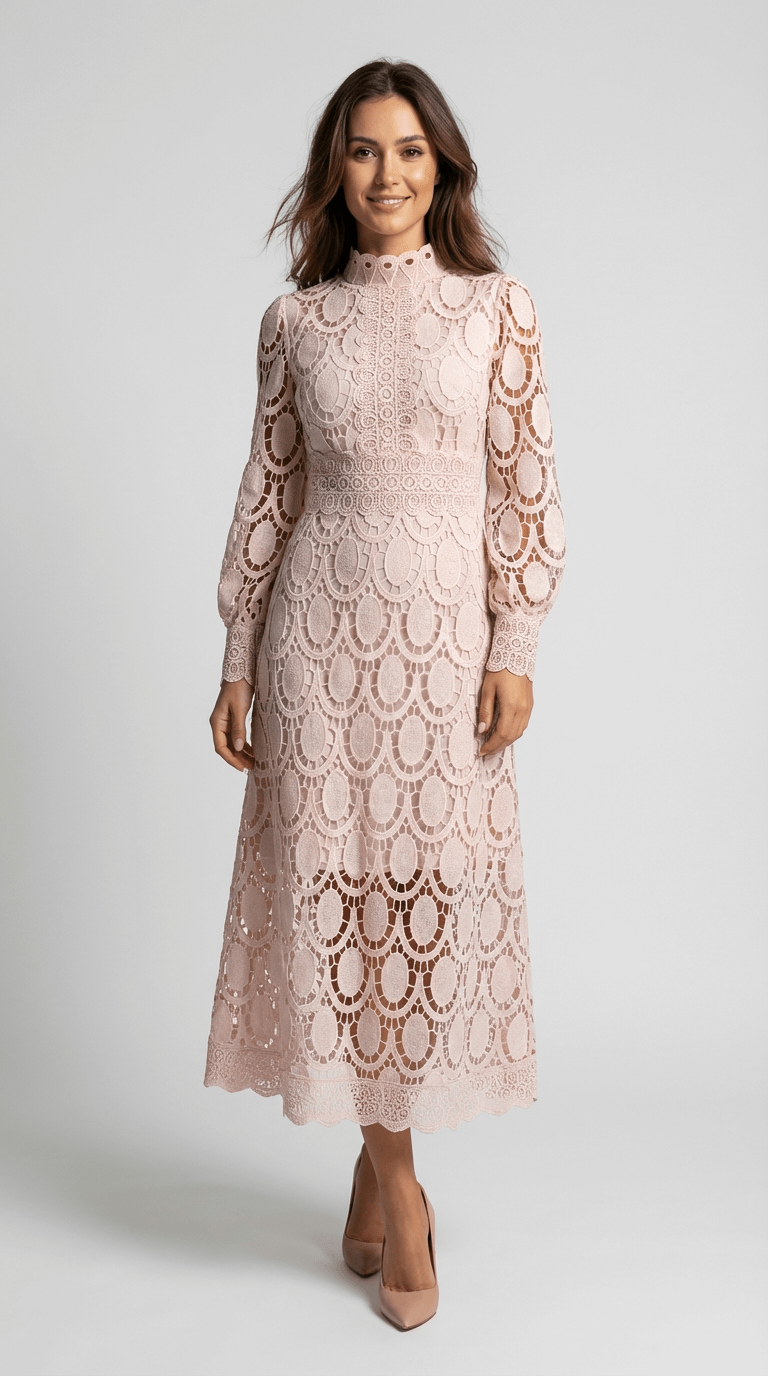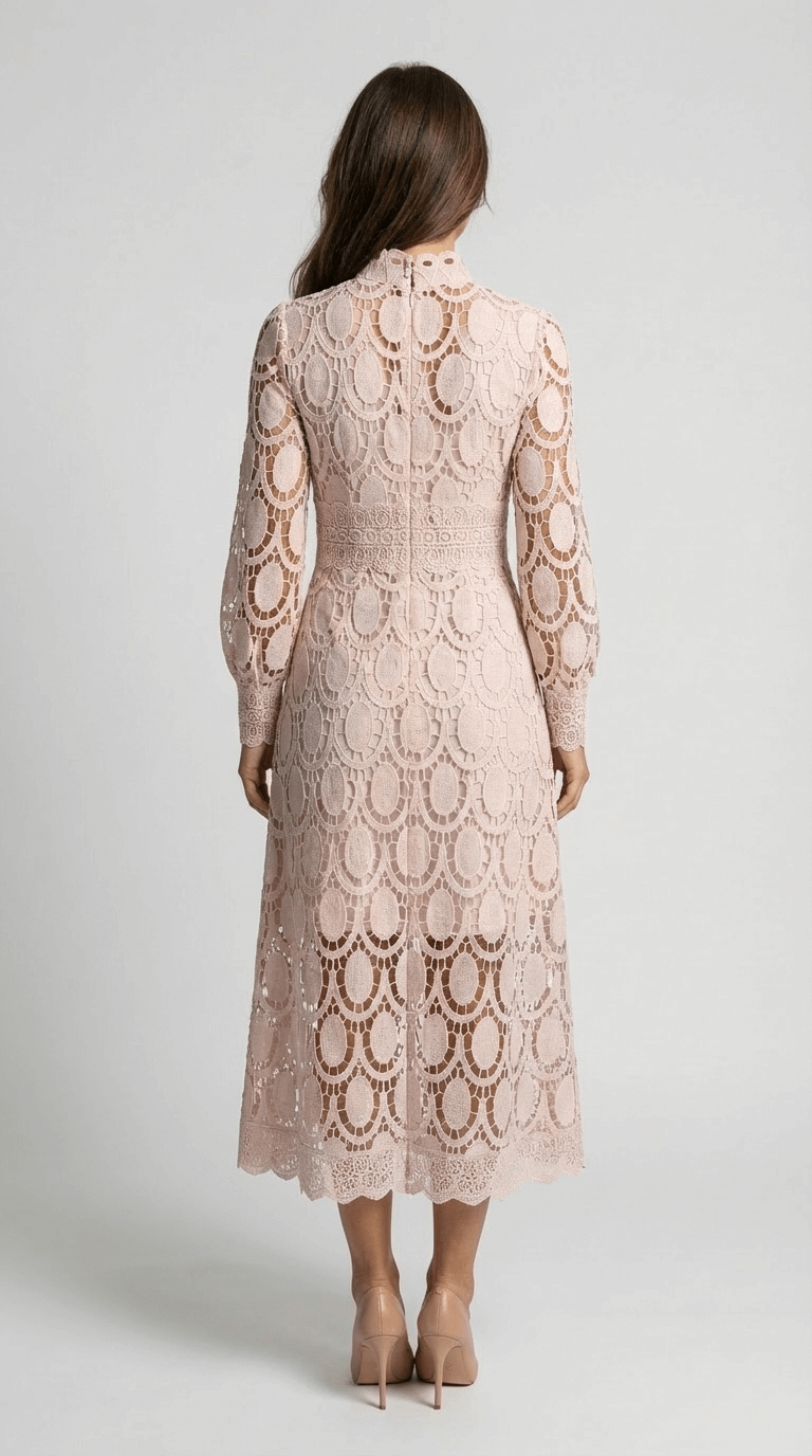 Melinda High-Neck Lace Midi Dress